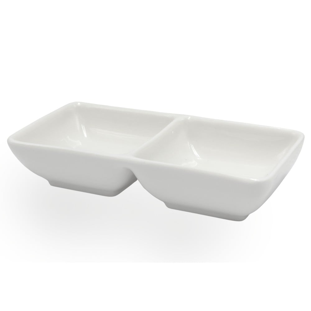 Add elegance and sophistication to any table with this two-compartment antipasti plate. Crafted from white ceramic with a smooth, modern finish, this plate combines simplicity with functionality. Its two separate compartments are perfect for serving antipasti, cheeses, small fruits or spices, preserving each flavor separately and offering a beautiful visual presentation. With its compact dimensions of 5.75x3 cm, it is ideal for individual use, but also for festive tables or special events. The clean lines and classic white color make this plate a refined and versatile choice, bringing a modern and elegant touch to any service.