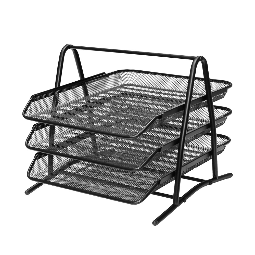 3 floors carrying metal document,black, 35x29x18.5cm is a useful accessory. It holds all the documents of everyday use. It is suitable for office or home. It is made of metal and is very stable.