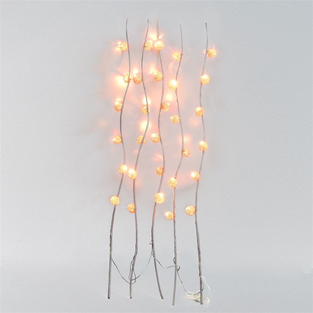 You're reviewing:30L WHITE LED (6L*5) WILLOW LIGHTS WITH RATTAN BALLS; ORANGE COLOR; 5 BANCHES; BRANCH DISTANCE: 30 CM; HIGH: 120 CM; WITH IP20 GS TRANSFORMER