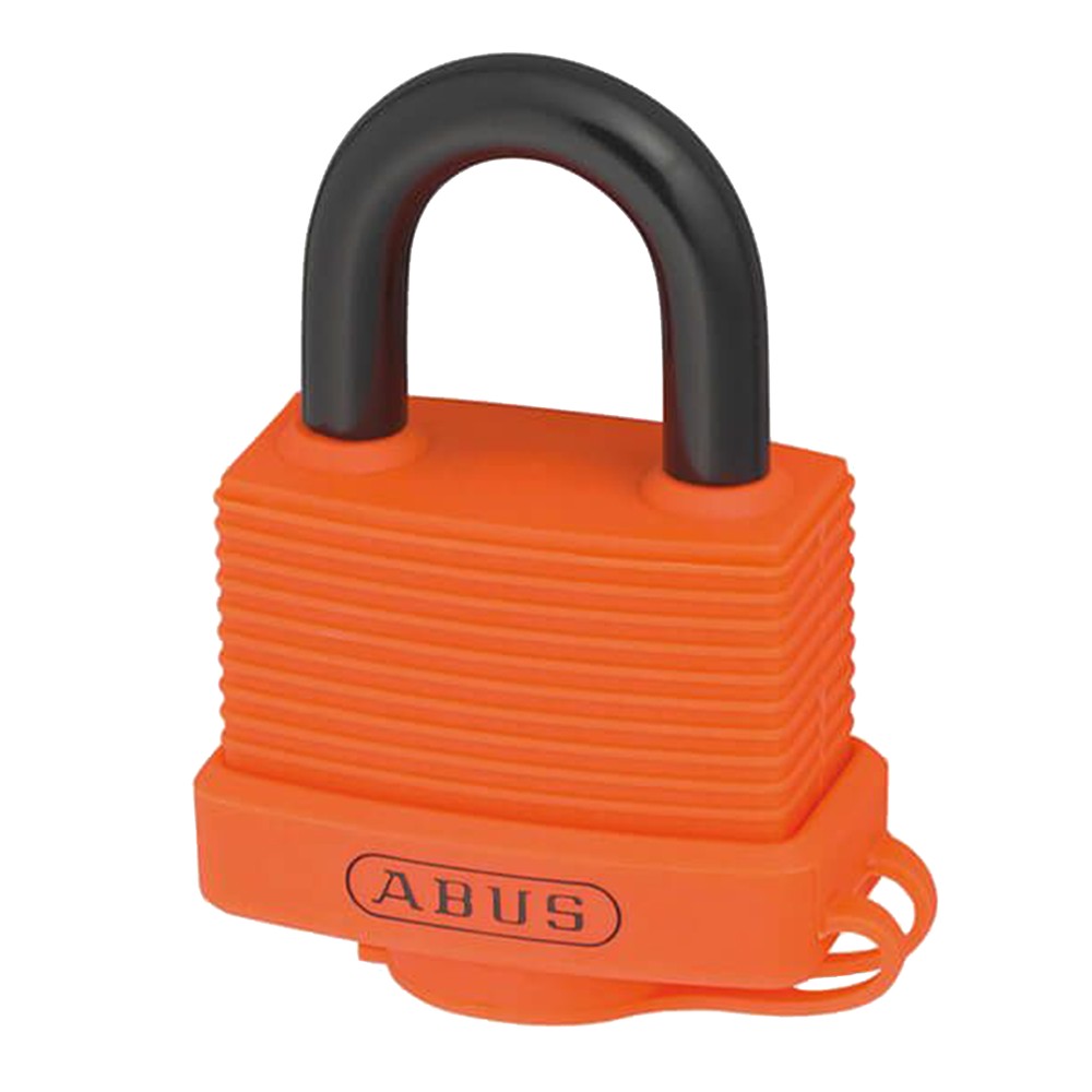 Abus padlock, 70AL/45 orange, compact aluminum body, vinyl coated special hard steel hack, with switches