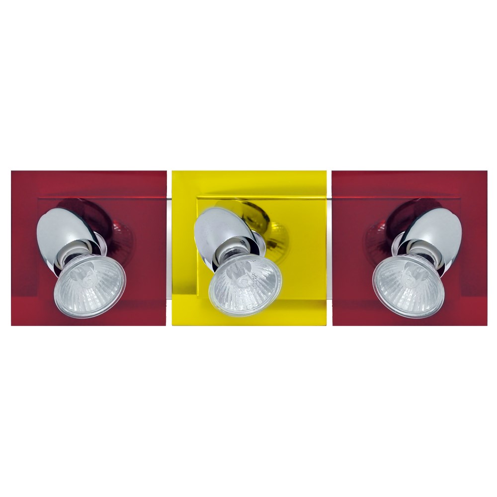 The elegant combination of aluminium with white glass and rectengular base in red and yellow nuances make this accent spot suitable for any environment. Very compatible with modern décor.