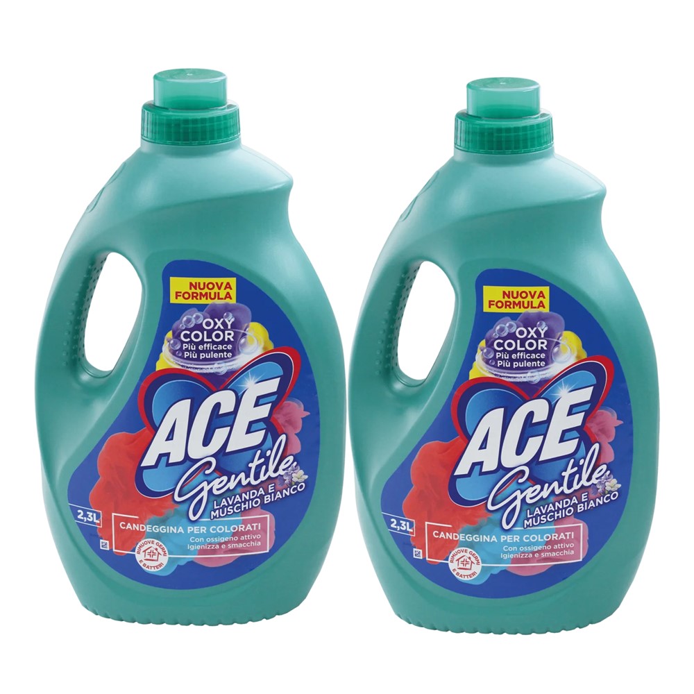 Clean your colored clothes from any stains thanks to ACE Gentile bleach with lavender and white moss. Thanks to the new Oxy Color formula, ACE Gentile bleach also removes grease stains and oxidizable stains, remaining safe for colors and fabrics and also removing germs and bacteria. The addition of active oxygen also eliminates bad odors, replaced by the fresh scent of lavender and white musk.
