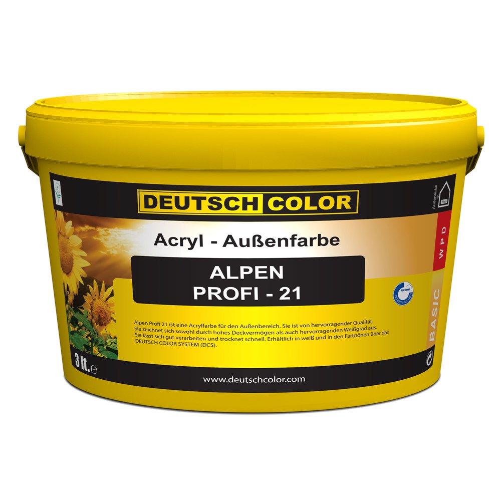 Alpen Profi 21 is an acrylic- resin -based paint for exterior use. It is characterized by excellent coverage strength and whiteness. It is an economic product for professional use which protects exterior surfaces, depending on weather conditions.