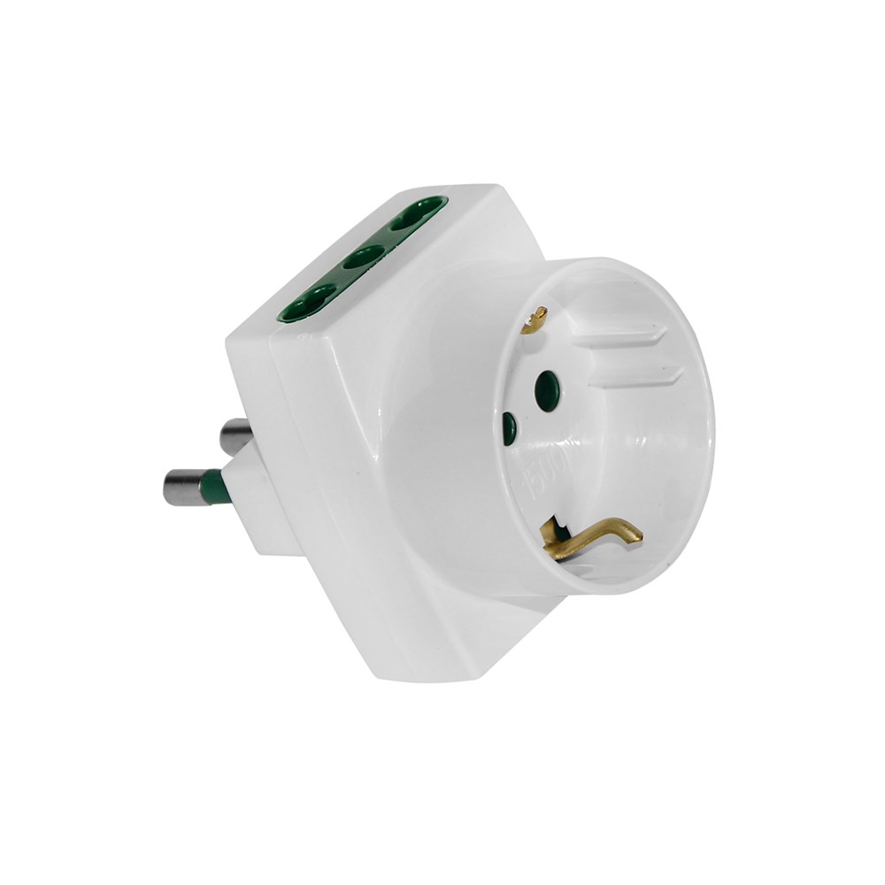 To adapt plug with sockets adapter are a very practical solution, plastic compounds and copper material.