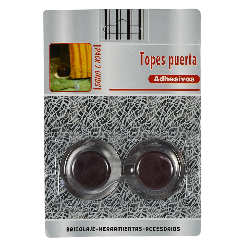 Adhesive door stop (Pck 2), Size: D.4.5 x2.5 cm, Color: Brown, Material: Metal/Plastic