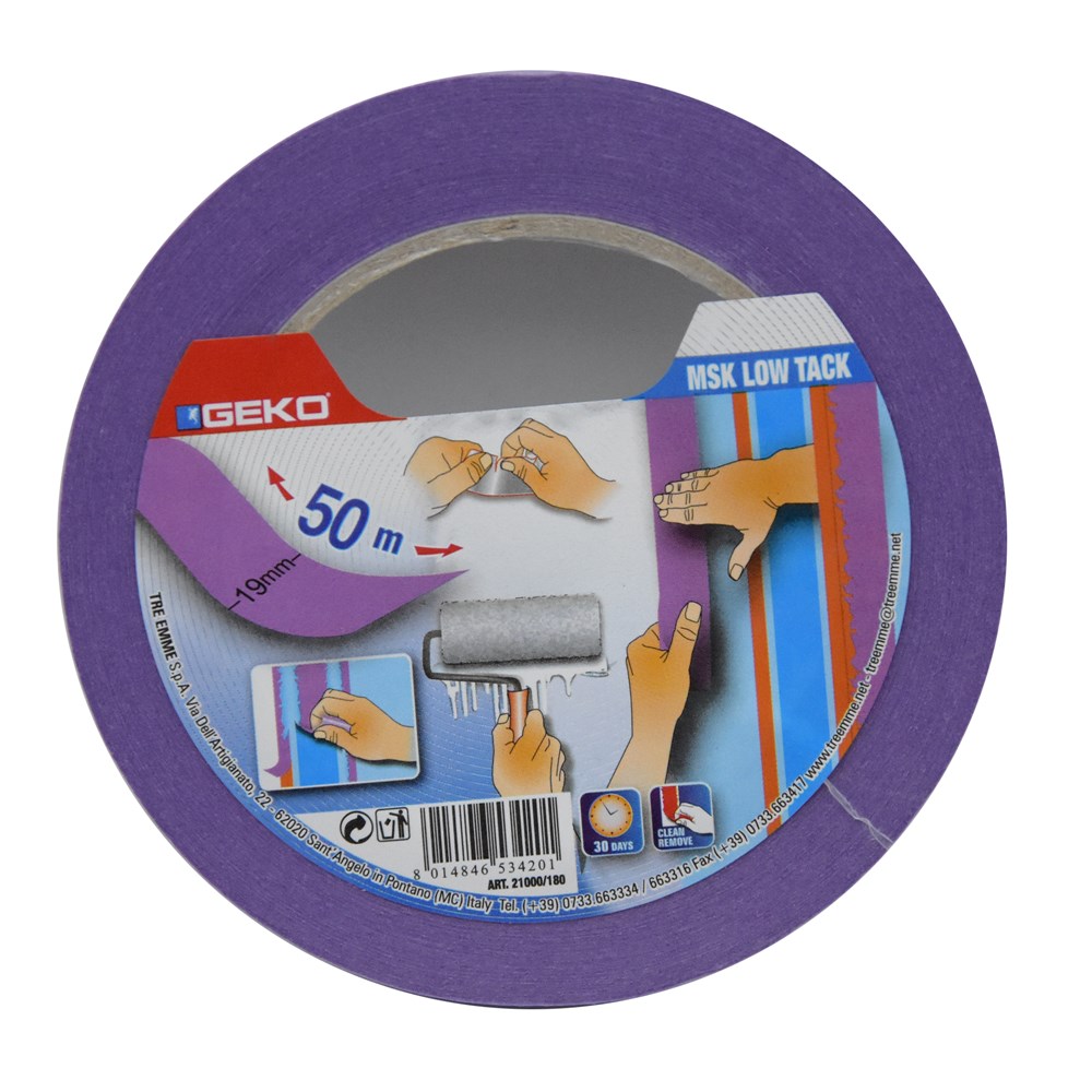 Adhesive masking tape, Geko, MSK Low tack, 19 mm x 50 m, violet