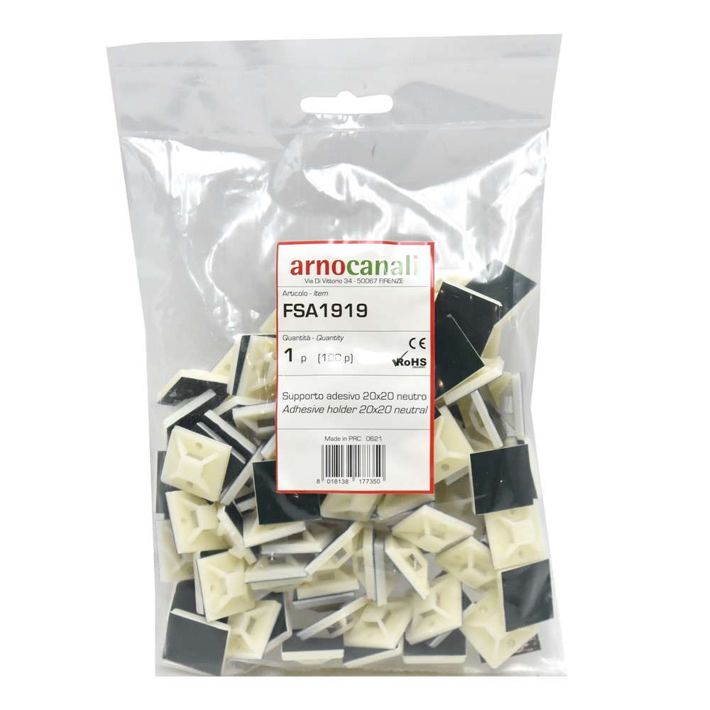 Adhesive support, 20x20 mm, 100 cop / pack. This electrical accessory comes to the aid of every professional to enable the capture by means of bandages, cables, on wall surfaces and others.