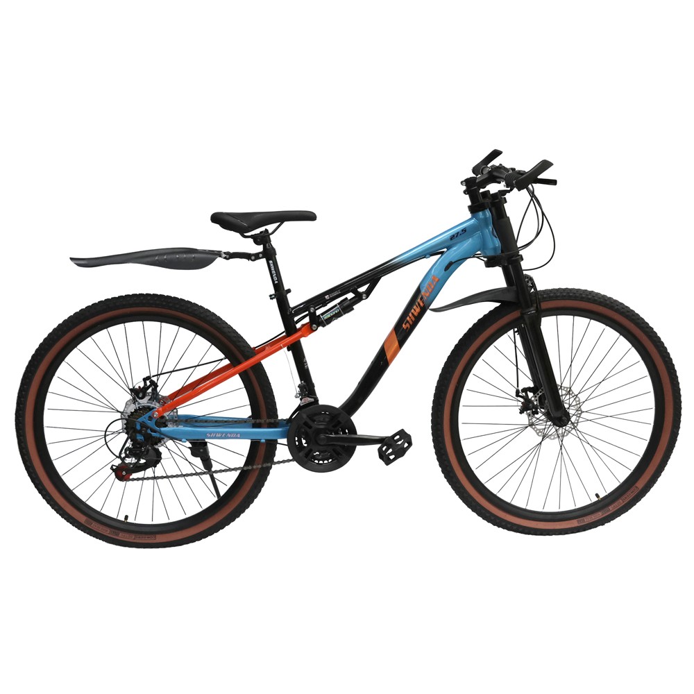 The perfect model that has everything within a single bicycle model. It has a solid steel structure with a super light weight with 27.5" tires made of nylon. This means twice as much resistance as normal bicycle tires and greater smoothness while pedaling. It is equipped with a shock absorber, which helps reduce the level of shock even on the most difficult terrain of use. The dual braking system helps to stop the bicycle immediately to prevent possible injuries. The bicycle is equipped with 24 speed levels which are provided thanks to the gears that this bicycle has. The latter has 8 gears in the rear and 3 in the front. Now pedaling on any terrain is no longer impossible, as you can choose your speed level depending on the terrain you are on.