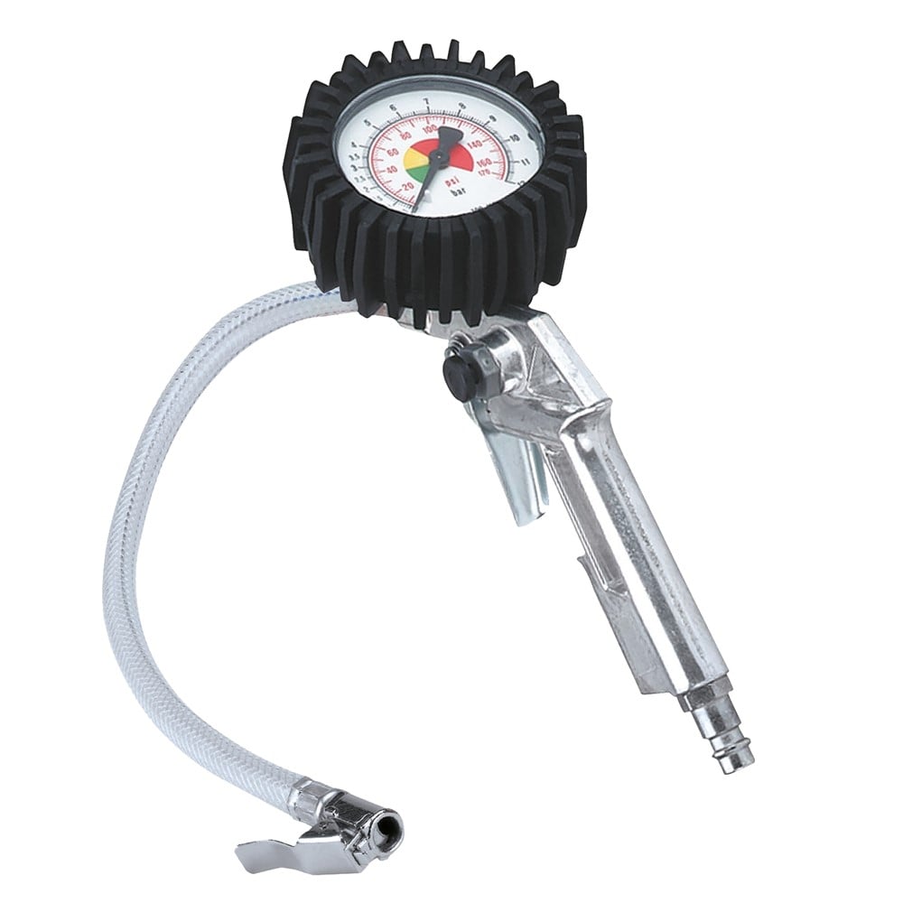 Ideal for inflating vehicle tires, inflating commas, cannons and air-operated equipment. Pressure indicator, provides accurate inflation and real-time measurement of air pressure.