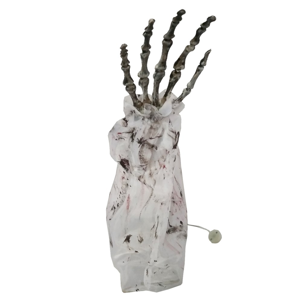 This mummy hand wants to play .. but it won't be nice !! Get ready to taunt and terrify anyone who walks through your horror house this Halloween when you place this creepy mummy hand decoration right in the direction of unsuspecting visitors! Hand is wrapped in tattered and 'dirty' brown gauze and has black fingernails.