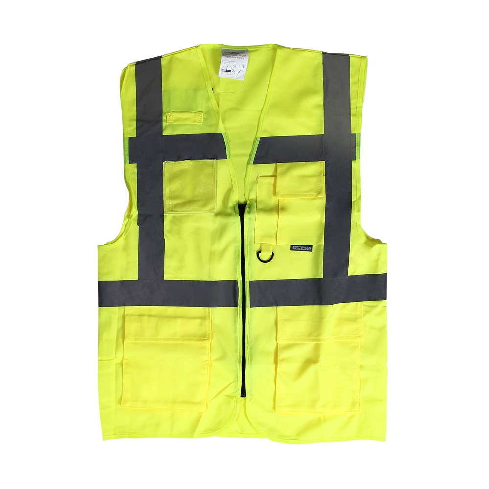 Revolutionary in its design, the executive vest combines the light weight of a waistcoat with the practicality of pockets for those situations when a jacket may be too warm. A clear ID pocket for security passes and cards compliments this unique garment. With many companies and their operatives now using combinations of hivisibility orange and yellow fabrics together, these contrasting styles are in increasing demand for many customers.