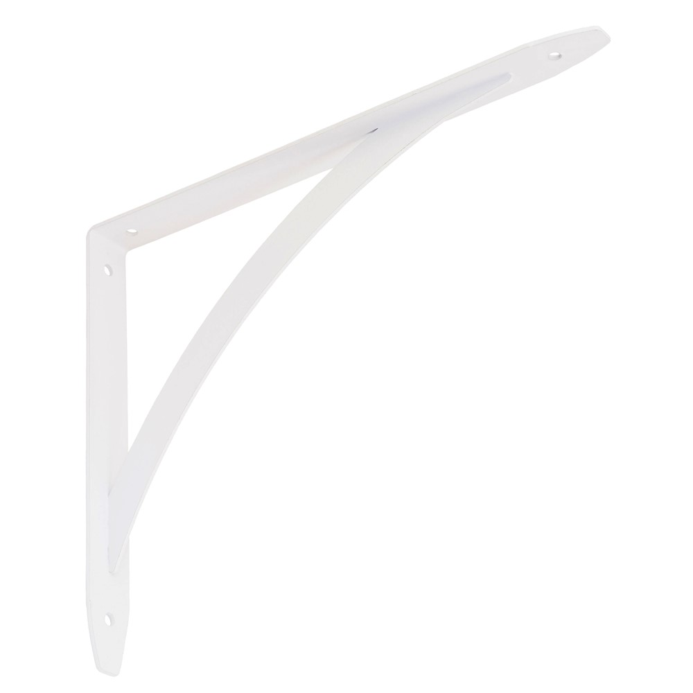 Arch shelf bracket, made of sturdy steel material, in white color, with dimensions of 25x20 cm, which serves as a functional accessory for various environments. The constituent material is resistant to use, heavy weights, rust or abrasion. It is used for wall mounting of self-supporting shelves, but it can also find other applications in professional and non-professional environments.