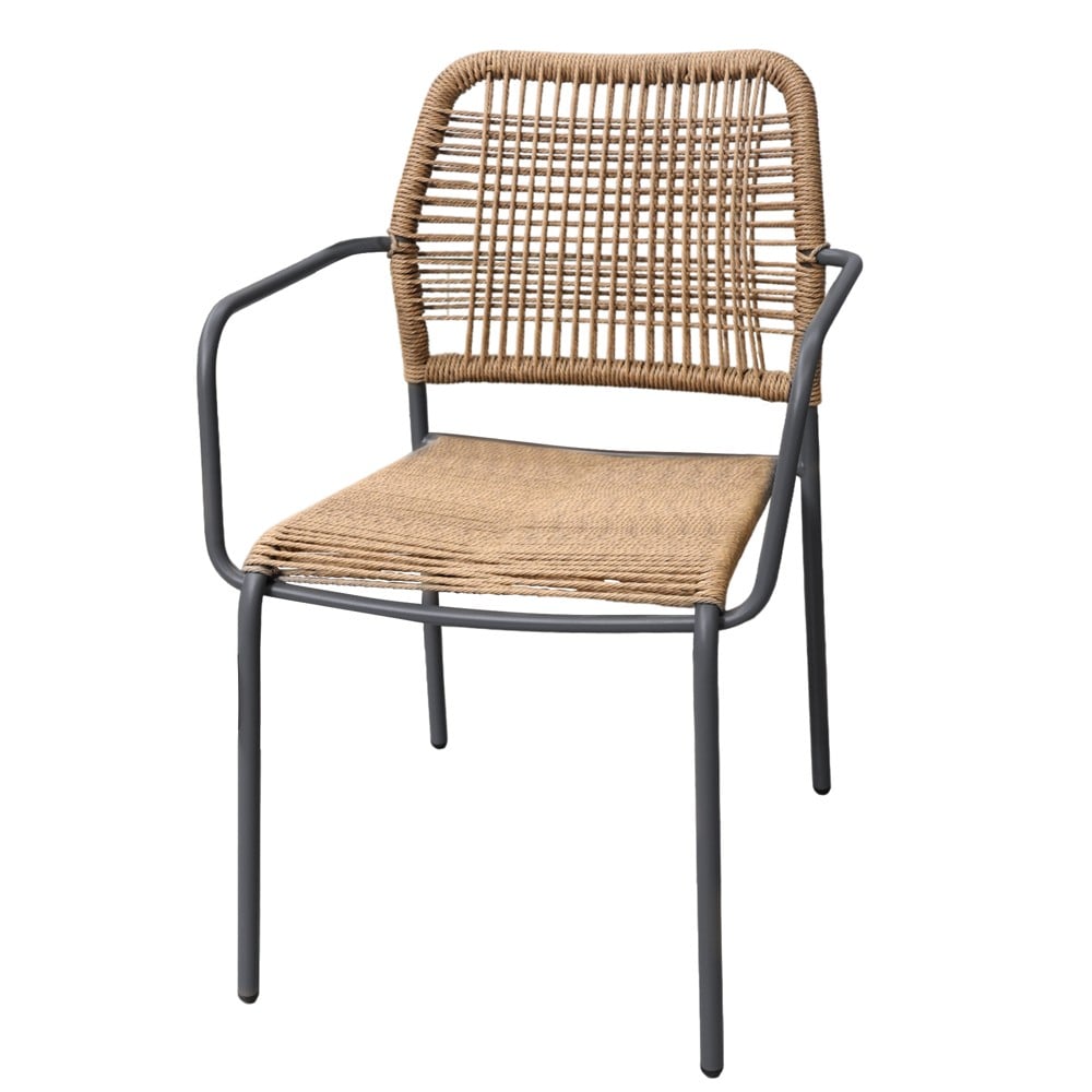 Made of solid metal structure, painted with the "electrostatic" painting method. Synthetic rattan weave, resistant to UV degradation and weather conditions. The high density of synthetic rattan threads, allow sports weight up to 120 kg. Armrests create comfort during use. Ideal for use in your garden or balcony. Thanks to its high resistance to multiple uses, this chair is also recommended for Professional "HORECA" uses. The possibility of stacking made storage easy, as the chairs can be easily placed one on top of the other.