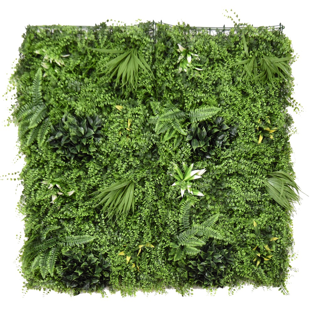 Artificial leaf fence, Giardino Verde, Roma, Dense Fern, 100x100 cm, 2950 gr/m², 1516 leaves/m², green with white color