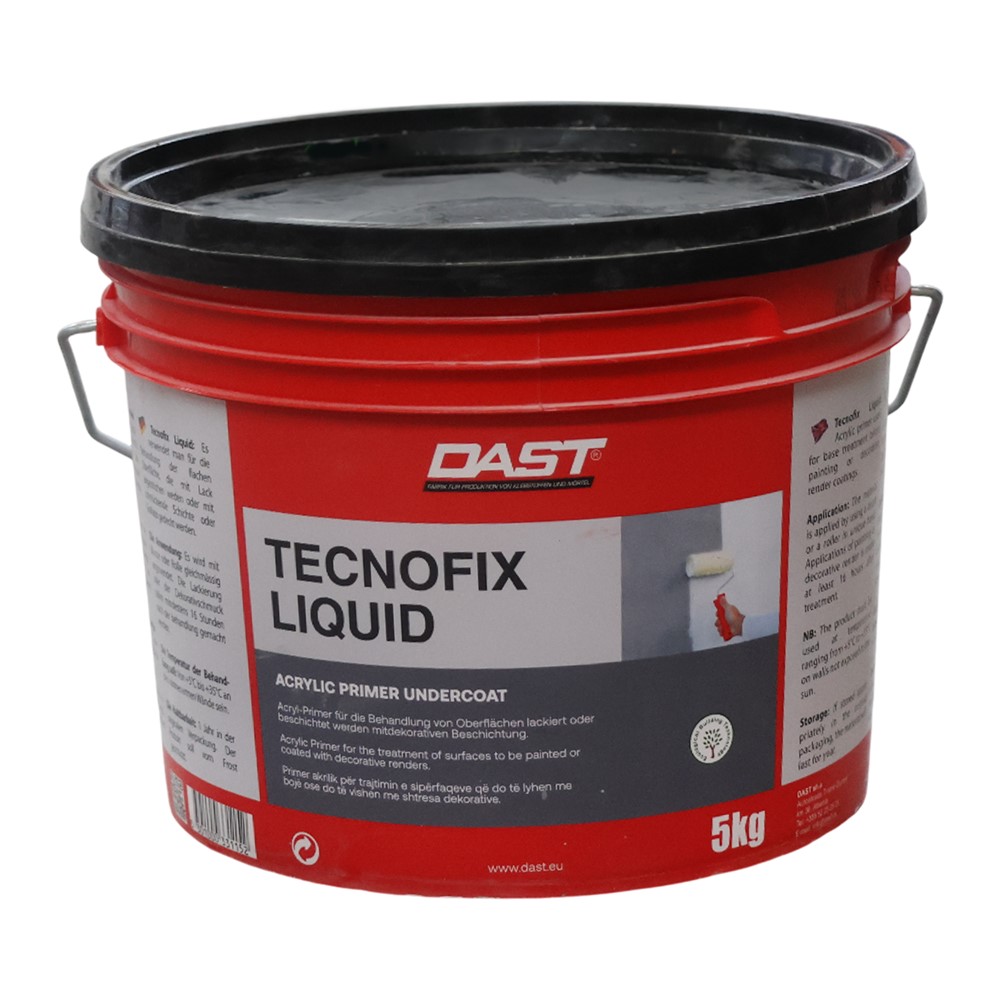 Acrylic based liquid material, resistant to alkali. Treating the surfaces with TEcnofix Liquid enables very good workability as well as obvuious easiness in working the decorative layers. It creates isolation and a very good connection of surfaces treated with the decorative layer. Easy for use white liner.All the technical characteristics for the decorative coatings that will be used are closely connected to the qualities of the liner that will be applied in advance.Tecnofix LIQUID reduces significantly the absorbing ability of the surface to the water. It uniforms the absorbing level of the surface where it will be applied.Adhesive qualities It reduces the absorbing quality of the suppor It neutralizes the pH value. It does not contain solvent.Application Area.It is used as a liner of surfaces that later will be painted or coated with refinishes (Bonifin, Fino, Classic etc.) or decorative coatings (Graffiaot, Decortex etc.)The preparation of the support, the support whereTecnofix Liquid is appied initially must be dry and clean of dust and remaining of oil, varnishes, wax and anti adhesive materials. Ht cleaning of oils, varnishes, wax or anti adhesive materials is done mechanically or manually.The products after being shaken manually in a bucket is ready for use. It can be diluted up to 100% with water.