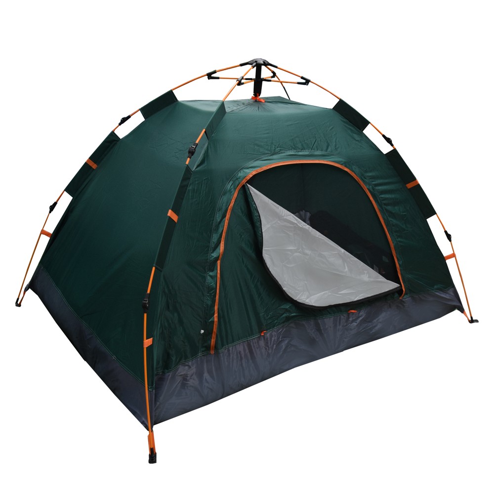 Automatic camping tent, size 200x150 cm, with dark green design, easy to raise or lower. The part in which you enter our umbrella opens and closes with a zipper and is protected by a part of the net which enables ventilation and prevents the entry of insects. Easily assembled and disassembled. The layers keep water out so the tent doesn't collect water.