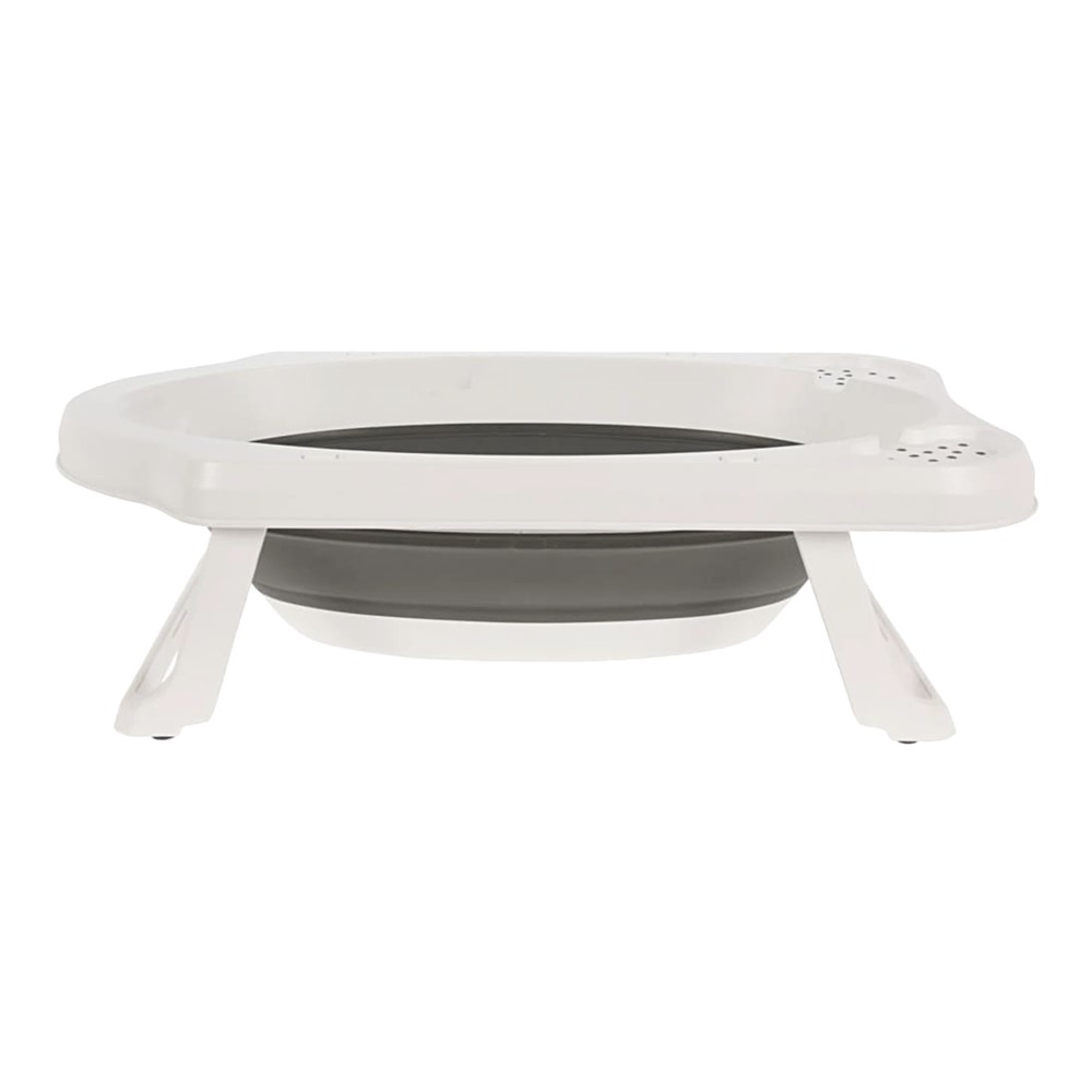 Bathtub for children, made of plastic and silicone material, which gives you the possibility to fold and be more practical and in this way does not take up much space. It has a size of 84x46x23 cm, and is white and gray in color. There are also two support legs that open and close, two convenient spaces for placing shampoos, as well as a stopper that drains the water. There are also silicone dots on the inside which ensure that the child does not slip during the shower. Suitable for children from 0-24 months.