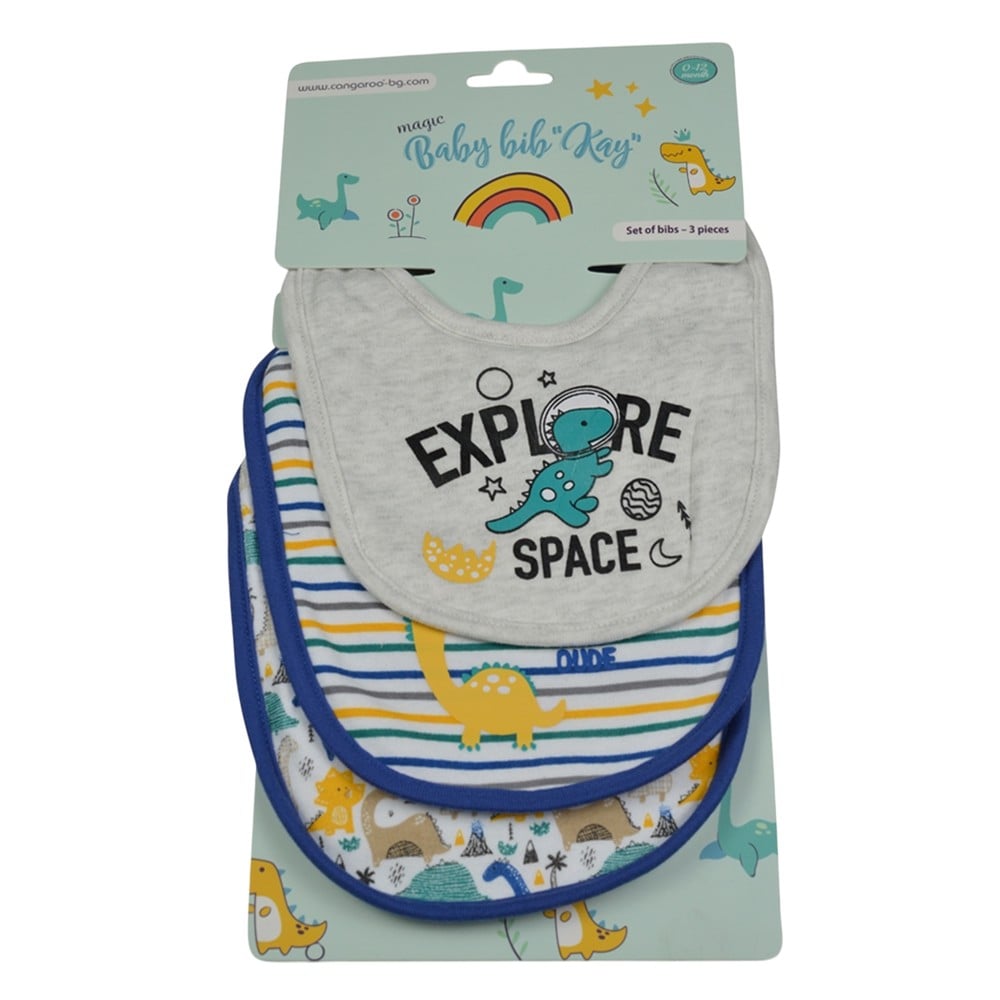 Baby bibs, Kangaroo, 3 pieces, mixed blue, 1 pack