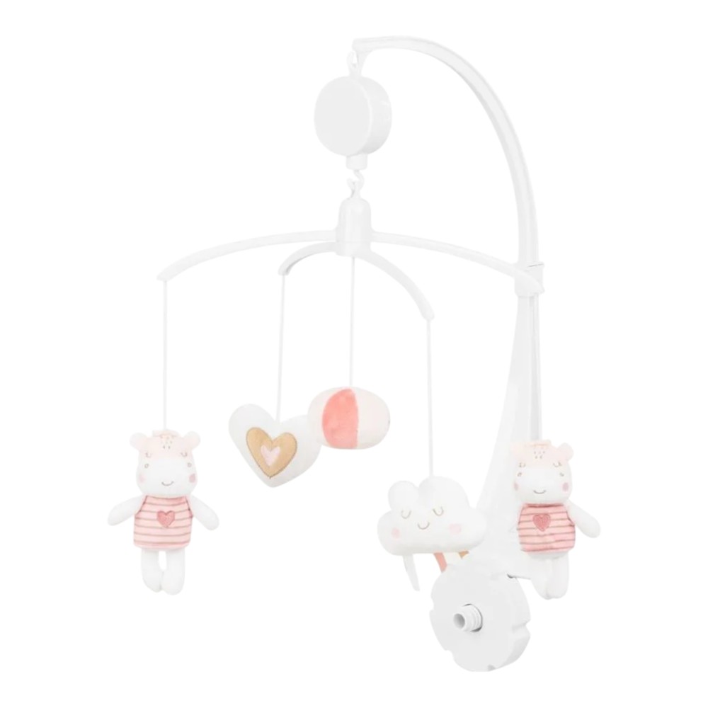 Children's toy, Hippo Dreams, made of plastic and plush, in a colorful design, which contains rotating plush. It is used to be placed in baby beds, stimulates the child's visual and auditory perception and contributes to a lighter and more comfortable sleep. This product is suitable for children over 6 months of age.