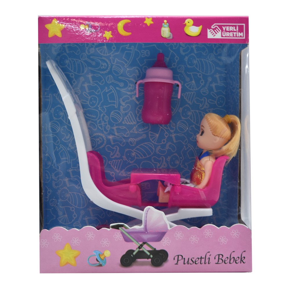 Toy set for girls, which includes a baby doll and a stroller. This set helps to develop the imagination, stimulates the development of the sensory skills and the development of learning skills in children, through role play. The constituent material and paint have no content that can be toxic or harmful for children and the product is certified for safety in use. This product is suitable for use by children over 3 years old.