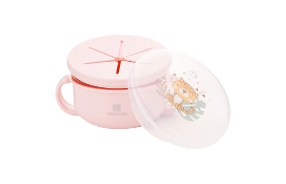 Savana children's food bowl in a 2 in 1 design (snack bowl - regular bowl). This bowl is made of plastic and silicone material, and has a waterproof lid. It has a capacity of 380 ml, and is suitable for children 12 months + who have started to explore food on their own, or for children over 6 months who have just started their first meals.