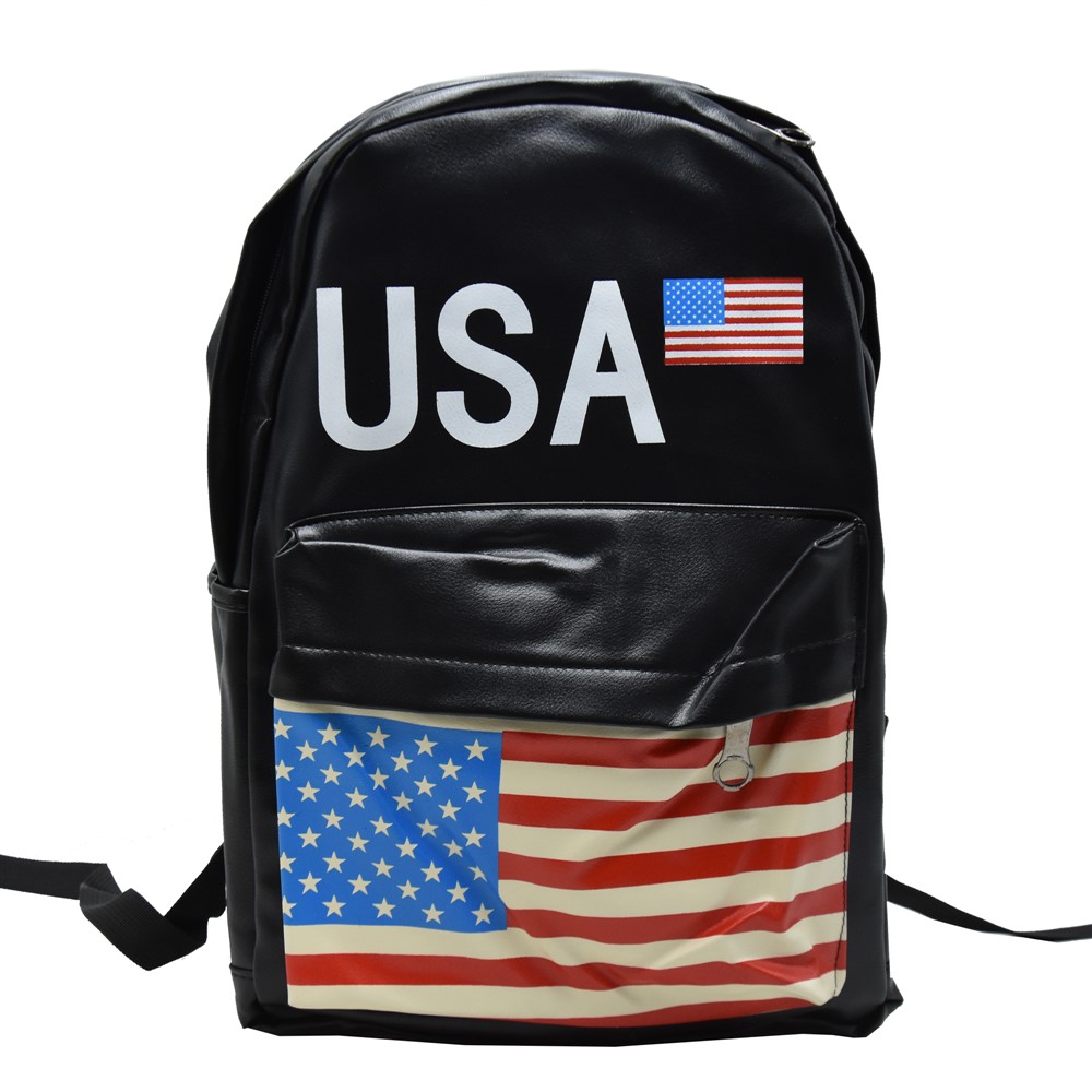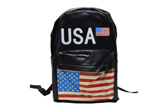 Backpack made of imitation leather material with Usa design. Suitable for travel, school, etc.