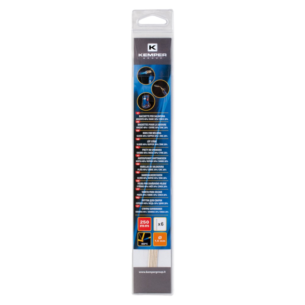 Baker-Silver electrode for gas welding, Kemper, 40% Silver, 30% Baker, 28% Zinc, d1.5 mm, 6 pieces
