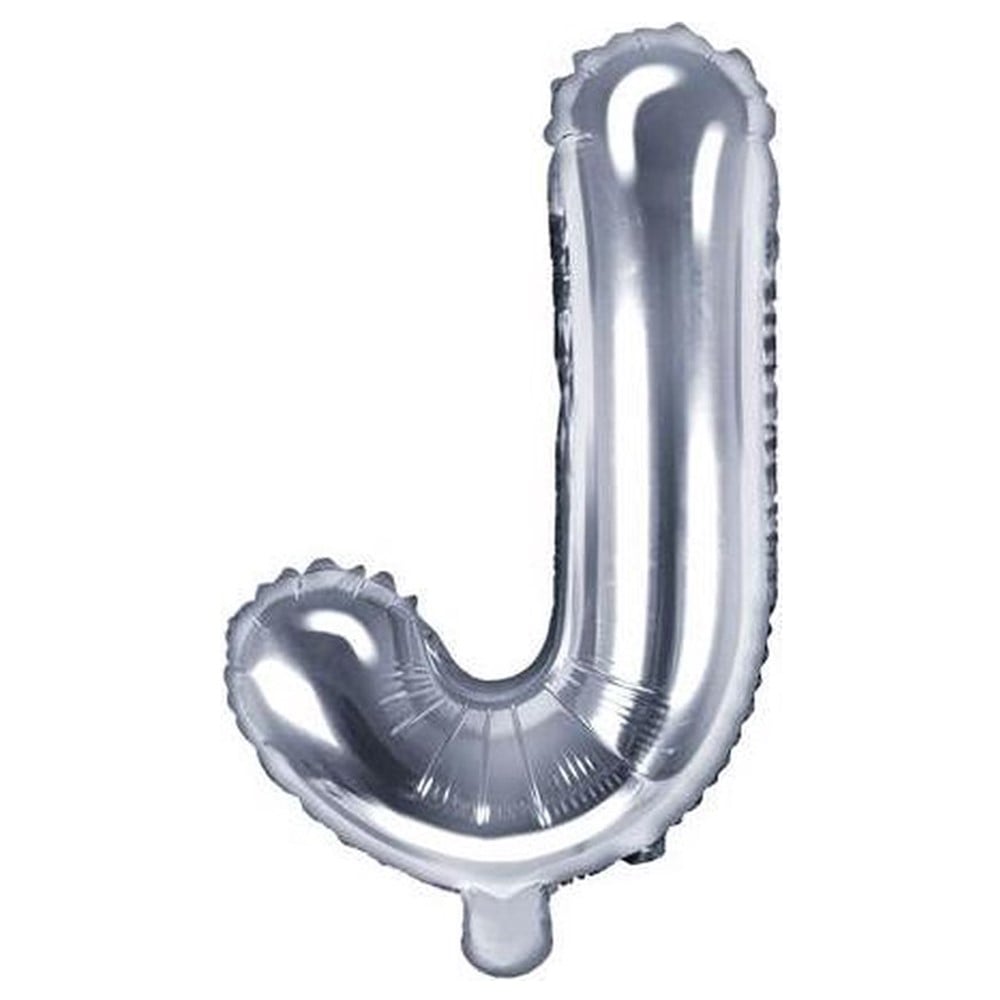 Balloon in the shape of the letter "J", made of nylon material and coated with refined aluminum, in silver color. This product is suitable for creating various decorations for parties and events.