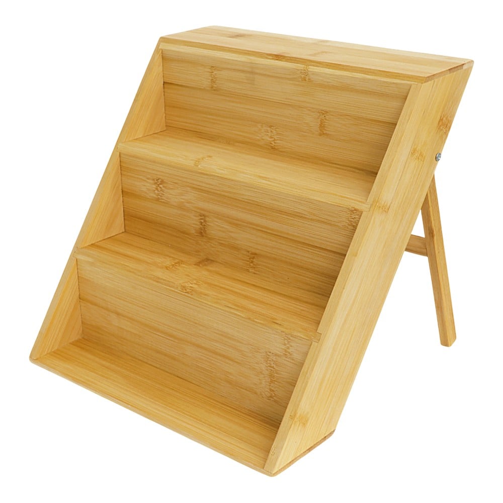 Keep everything organized and accessible with this 3-tier natural bamboo organizer shelf. Crafted from durable, naturally colored bamboo, it combines functionality with organic elegance. Measuring 29.5x30 cm, it offers ample space for organizing dishes, small snacks, kitchen accessories, or everyday items. The practical 3-tier design keeps everything organized and accessible, while the natural hue brings warmth and style to any space.