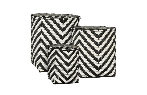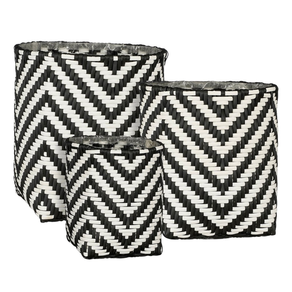 "Merlijn" flower baskets are a perfect set in plastic material, available in white and black. With dimensions Ø27xH30 cm, Ø30xH32 cm and Ø34xH35 cm, these flower baskets offer an excellent solution for presenting flowers at home or in other settings. Their modern and minimalist design makes them easily fit into any decor style. Besides being stylish, these baskets are also durable and easy to use, making the experience of planting and presenting flowers easier and more enjoyable.