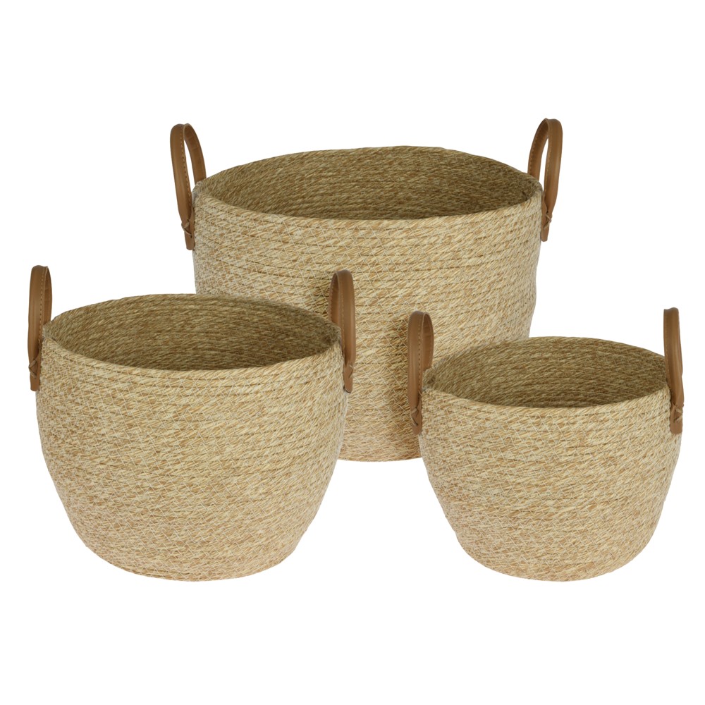 You're reviewing:Basket, set 3 pieces, with handles, polyurethane, brown, 24x24xH18 cm; 28x28xH22 cm; 32x32xH24 cm