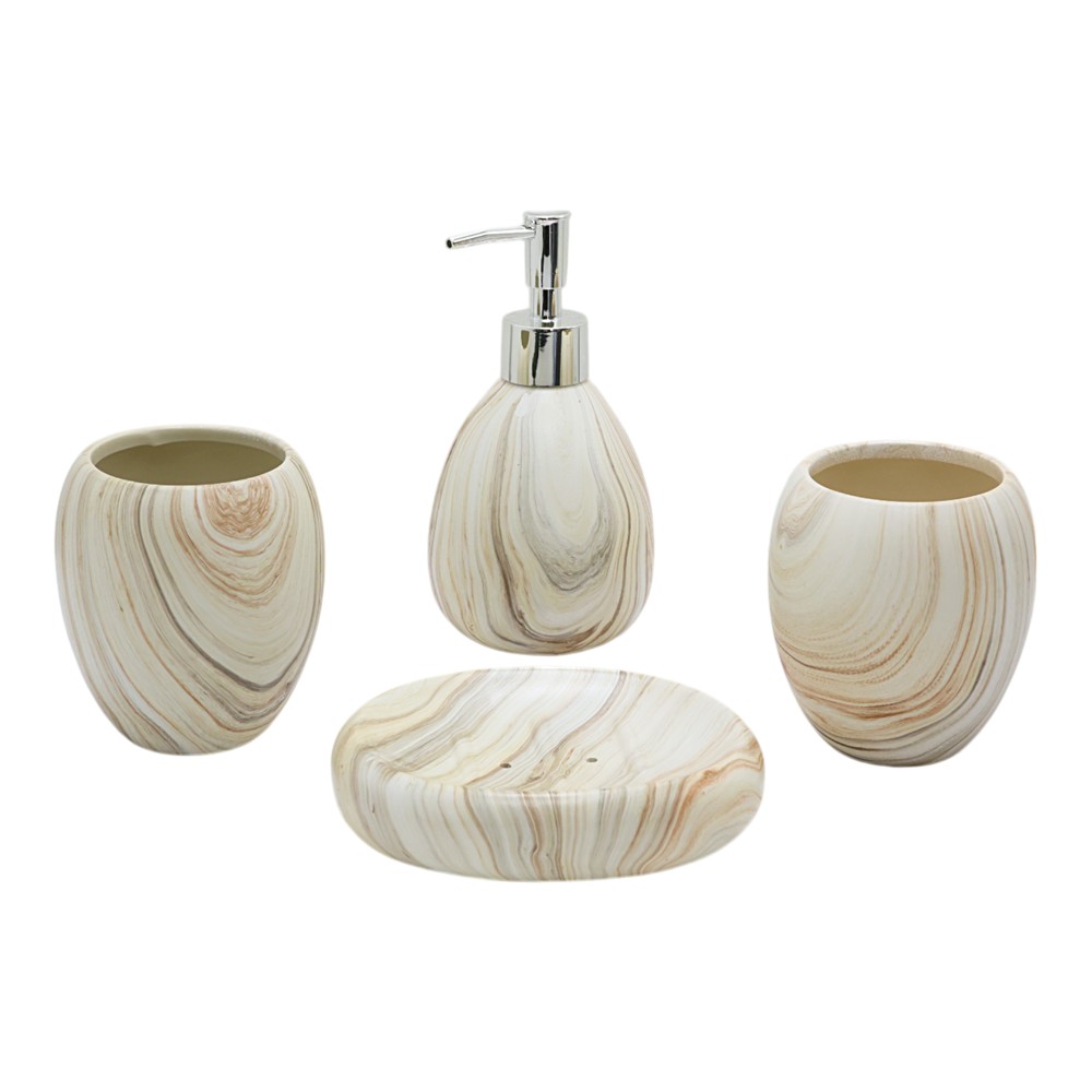 Set includes: Soap dispenser, 2 x Toothbrush holder, Soap holder
