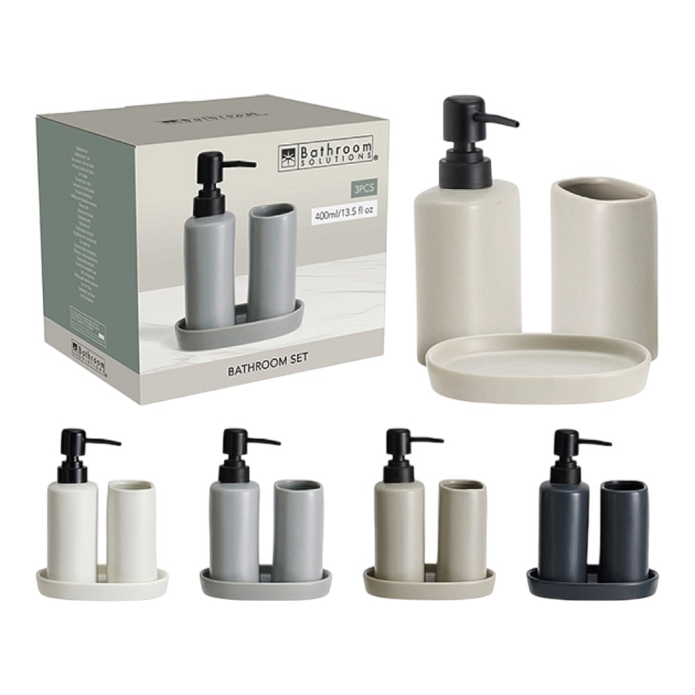 Elegant and practical ceramic bathroom set that combines functionality and modern design. The set includes 3 items necessary for organizing the bathroom: a liquid soap dish, a toothbrush cup and a soap dish. In addition to being functional, they are also pleasant to look at, as they come in three different colors that you can choose according to your preferences and bathroom decor. Their material is hygienic and resistant, which means that you will have a high-quality product. Their minimalist shape will look very nice on your bathroom shelf and also serve as an additional element among all your bathroom accessories.