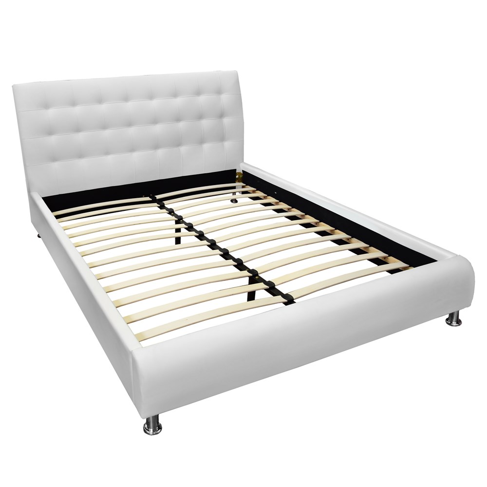 Bed, double, wooden structure, pu upholstery, white, 160x200 cm