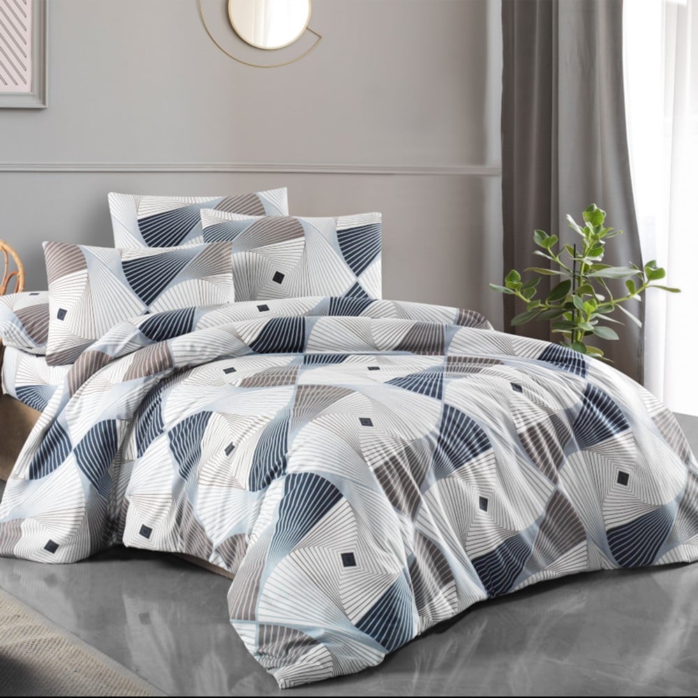 Bedlinen set, double, flannel, brown/blue/black/white, 240x260 cm; 160x190 cm; 50x80 cm (x2)