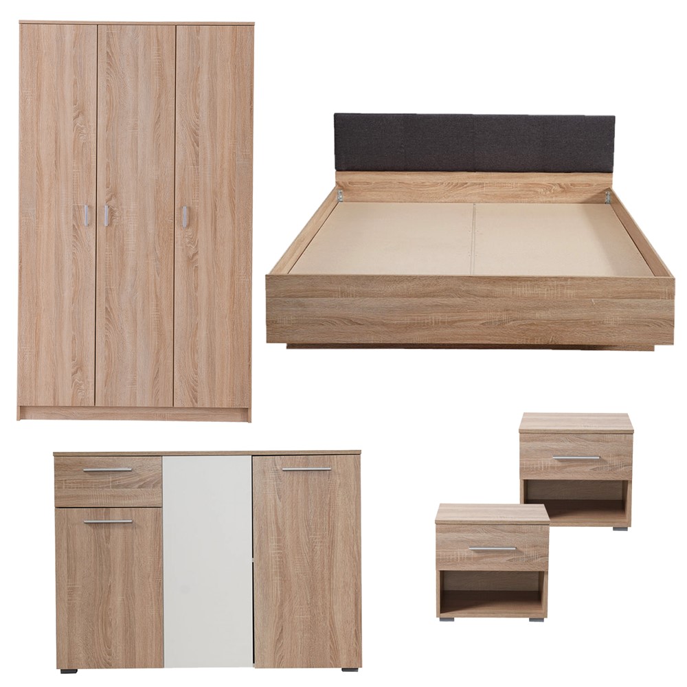 211653-Update the look of your room with this stylish bed from FORMA IDEALE. This bed offers somewhat of an modern style with its design. Both durable and stylish, this bed is a perfect piece of furniture for your bedroom. Pair it with the rest of FORMA IDEALE collection to create a practical and stylish room. 211114-The double-winged cupboard HANA 3K is intended for storing clothes. HANA 3K cupboard model has a classic opening mechanism. 212901-Cabinet RITMO, in a sonoma oak and opaque white decor, is a part of the bedroom element collection of the same name. It consists of three closed parts with horizontal shelves and one drawer. A multi-purpose chest of drawers and storage for shoes, folders, etc.. 211654-This 1-drawer will add a contemporary look to your room. Practicality in storage dresser and accessories makes this piece fascinating. Pair it with the collection to create a practical and stylish room.