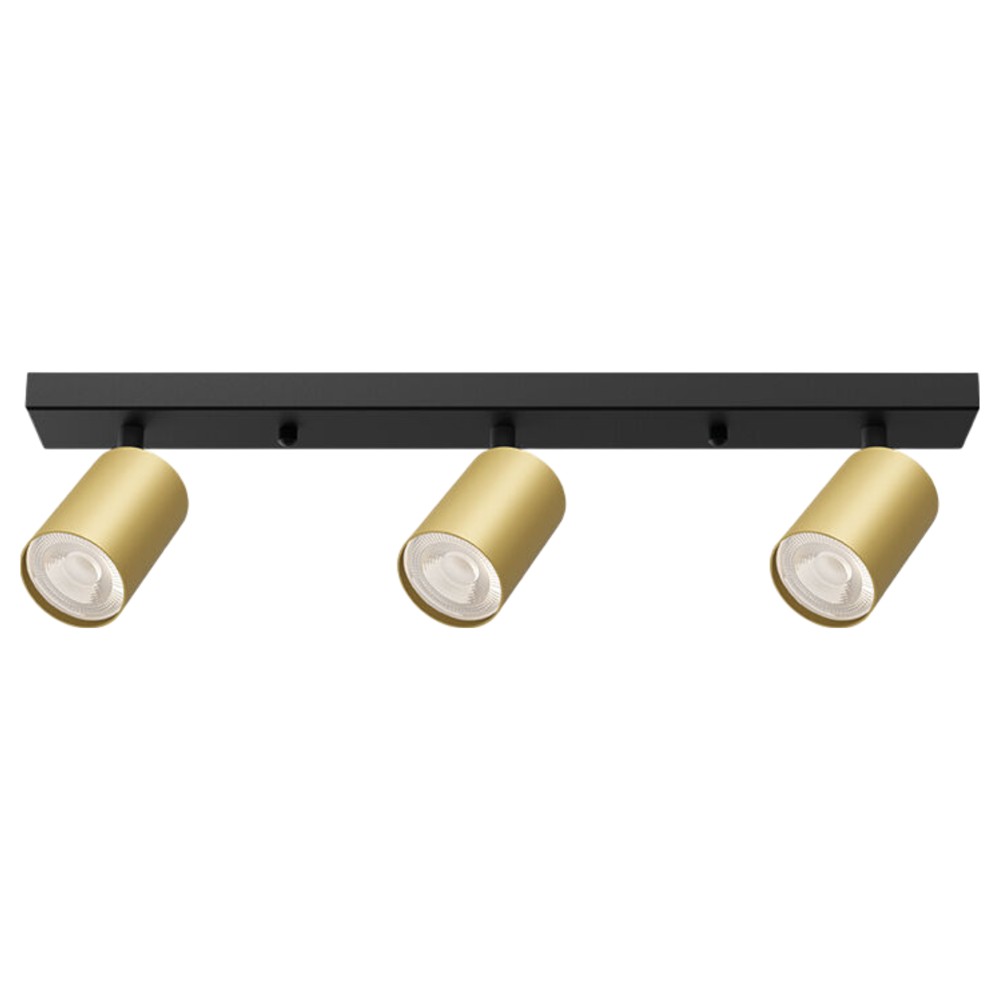 Beta luminaire by Braytron with 3 GU10 bases. Gold-colored aluminum body. Dimensions 6x12x48 cm. Modern and elegant design, suitable for powerful and focused lighting in various environments.