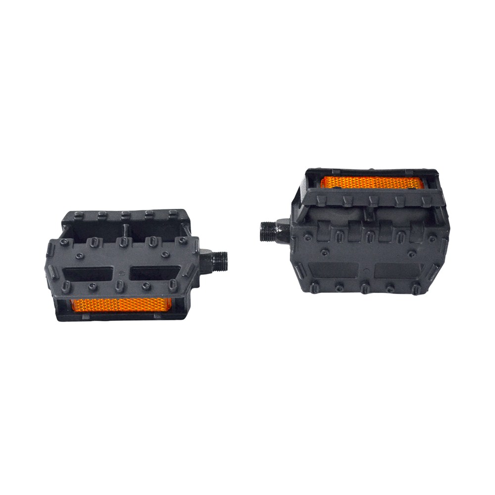 Bicycl plastic pedals feature durable steel axles, quality bearings and tough nylon bodies with teeth for a great grip. There are also reflectors for visibility.