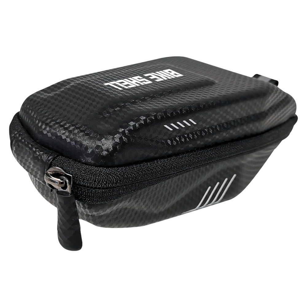 With storage space of 18 x8.5 x H5 cm. Ideal for storing personal items while pedaling. The waterproof chain secures your personal belongings even during rainstorms. The product is placed under the bicycle saddle, in the back. Holding is carried out by means of a plastic clip