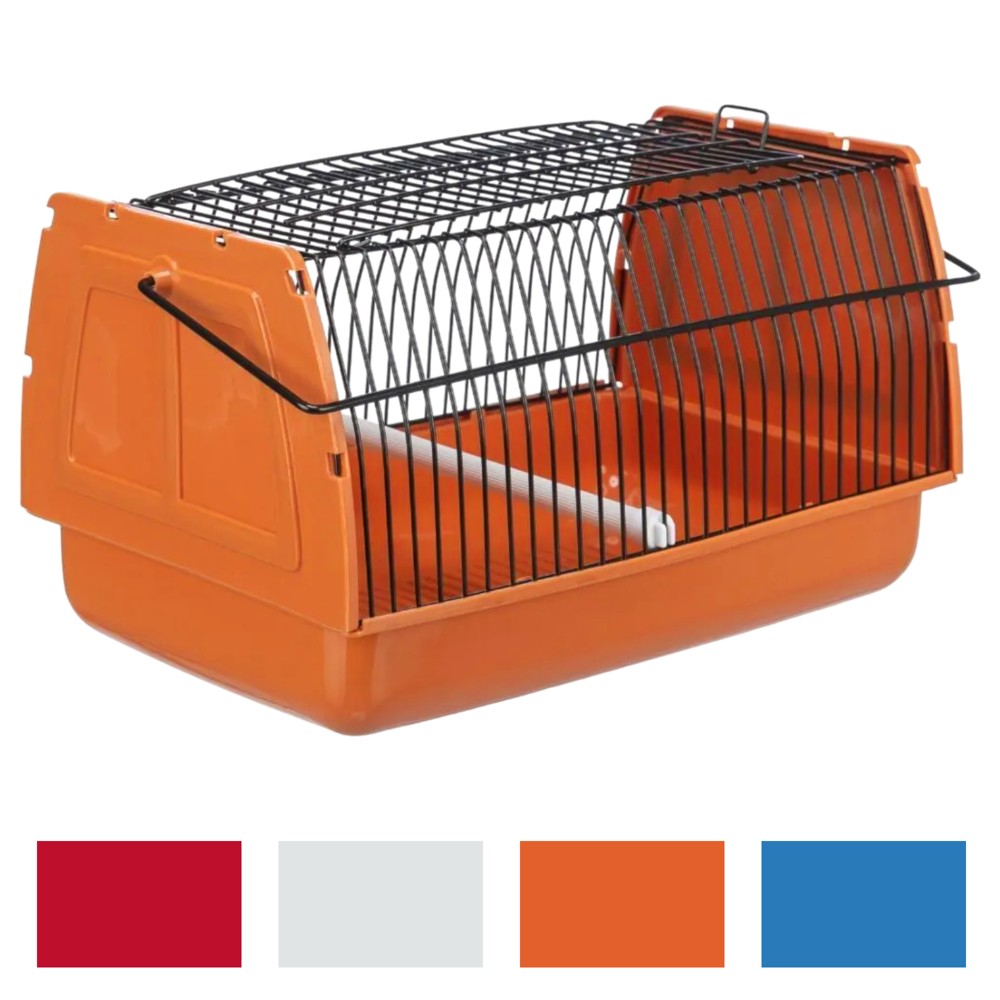 Animal carrier built from plastic material in the side structural part and metal in the front and upper part. It is ideal for daily use but also for sending your pet to the vet. It is equipped in the upper part with a metal handle for added ease of transporting your pet.