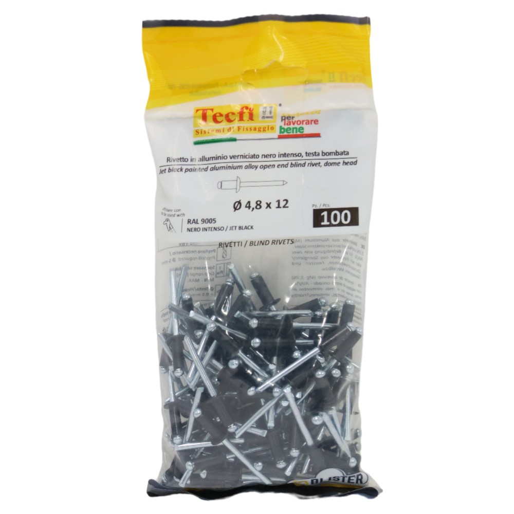 black dome blind rivet,al/zp steel RAL 9005, Ø 4,8x12mm, Bag 100