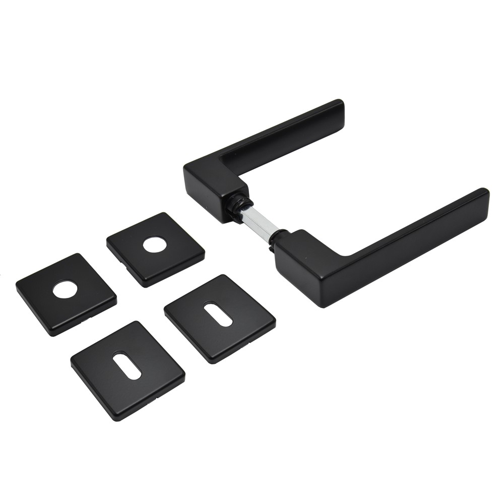 This door handle with black color.It is a qualitative and resistant handle, her body is composed of solid aluminium material, including accessories for instalation.