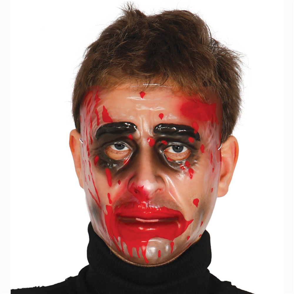Scary halloween mask, made of plastic material, gives the idea of a face covered in blood. Used by children over 12 years old. This bloody face mask will scare everyone's madness during Halloween