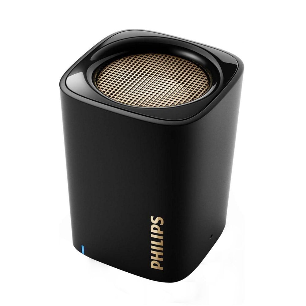The Philips BT100B Bluetooth Portable Speaker with Built in Mic delivers incredible sound without you having to connect it to power outlets or connector cables. The portable speaker’s 2W RMS output and Anti Clipping Function enhancement helps it produce high fidelity sound without distortion. A built in microphone enables crystal clear handsfree calls. The Bluetooth speaker’s integrated Lithium Polymer battery provides up to 8 hours continuous music playback on a single charge.