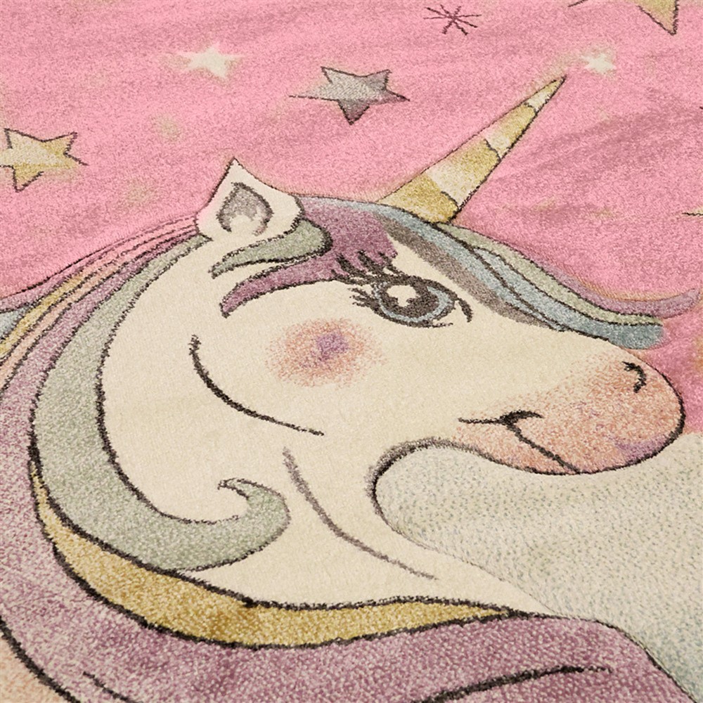 This Bond children's carpet, measuring 133x190 cm, is designed to bring warmth and joy to your child's room. Made from high-quality polypropylene, this carpet is durable, stain-resistant, and easy to maintain, offering a practical solution for parents. The soft pink color and child-friendly design create a pleasant and inviting atmosphere, perfect for playtime and relaxation. Its soft surface provides high comfort underfoot, making it suitable for all daily activities of children. This carpet is the perfect choice for a child's room, combining a beautiful and comfortable appearance with the functionality parents need to maintain a clean and safe environment.
