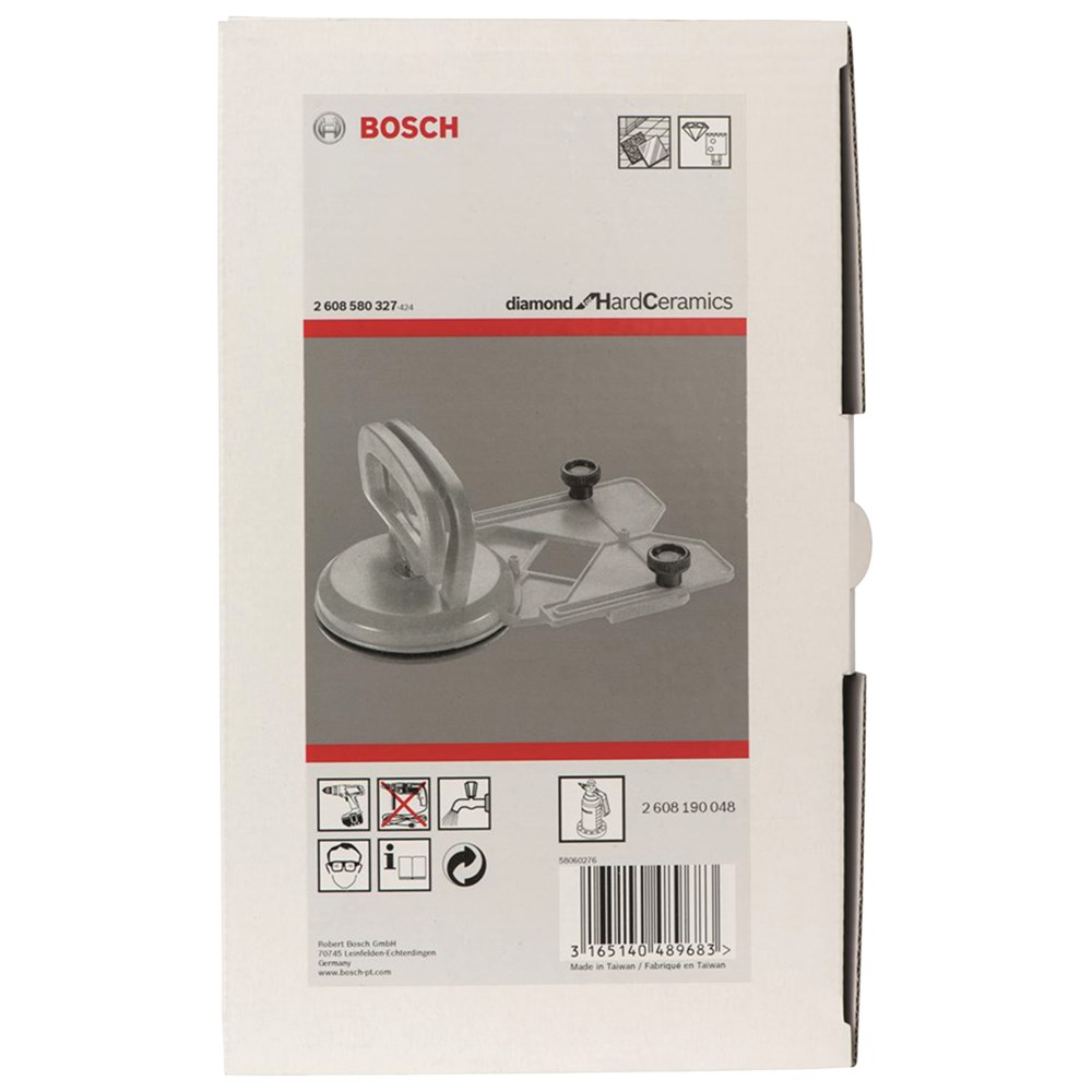 This centering aid is suitable for cordless drills. This centering aid saves time and energy when drilling tiles without a center drill. The hole saw remains exactly positioned and drills the hole at exactly the pre-marked location without moving.