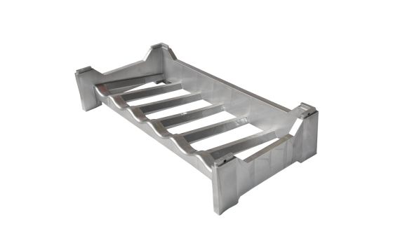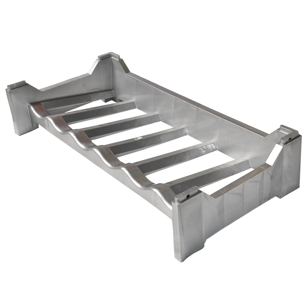 Bottle holder, made of plastic material, in the shape of a rectangle in gray color, with 6 seats, Used for holding bottles with different capacities, Suitable for use at home and in restaurants.