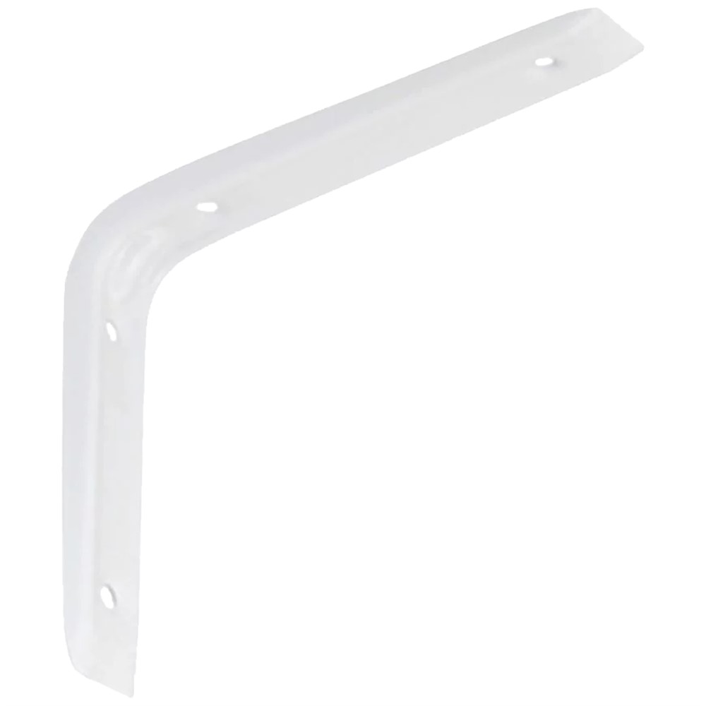Shelf bracket, made of sturdy steel material, in white color, with dimensions of 12.5x15 cm, which serves as a functional accessory for various environments. The constituent material is resistant to use, heavy weights, rust or abrasion. It is used for wall mounting of self-supporting shelves and to enable the installation of LSS (Long Span Storage) type shelves, but it can also find other applications in professional and non-professional environments.