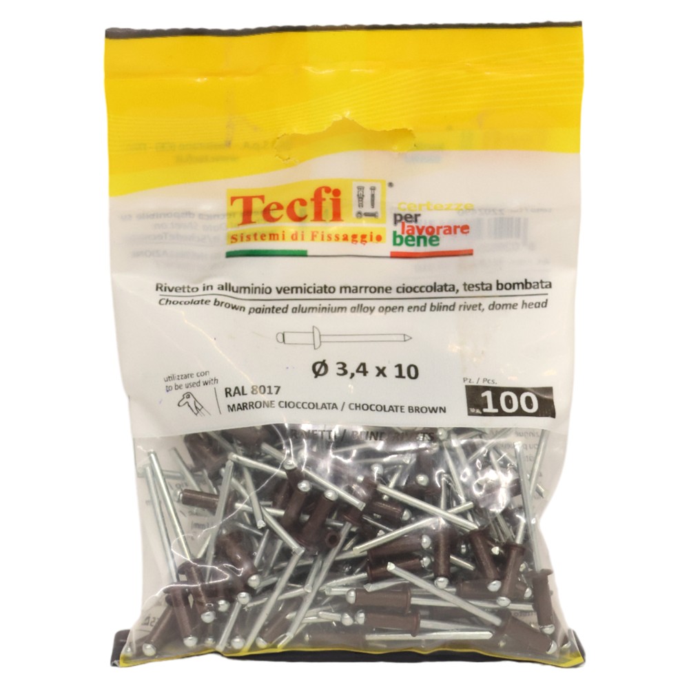 brown dome blind rivets, al/zp steel RAL 8017, Ø 3,4x10mm, Bag 100