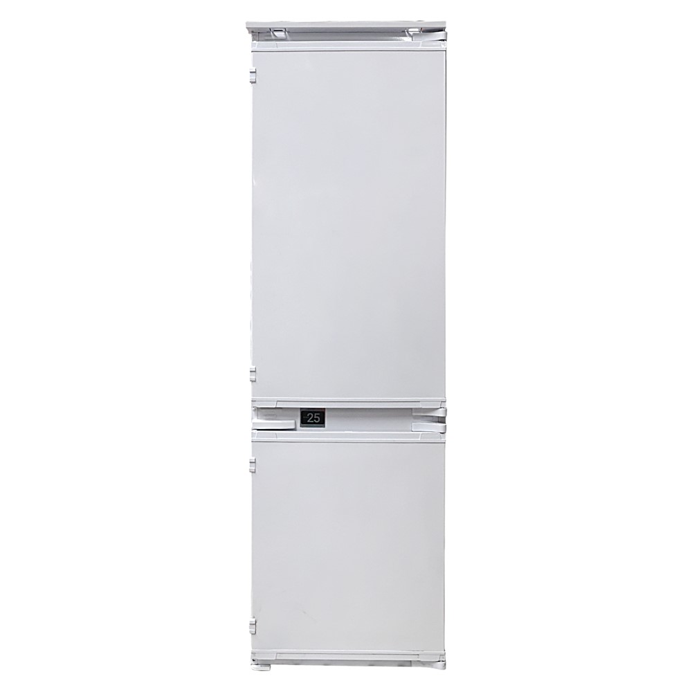 The Beko BCHA275K41SN is a 177.5 cm tall, built-in, bottom-freezer refrigerator with a 262-liter total capacity and an E energy efficiency rating. It features No Frost technology to prevent ice buildup, a ProSmart Inverter Compressor for efficiency, and a 38 dB noise level. Ideal for integrated kitchens, it includes reversible doors, LED lighting, and 3-drawer freezer storage.